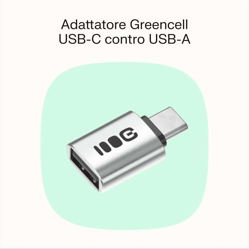 L'immagine mostra l'adattatore GreenCell USB-C a USB-A