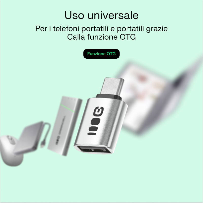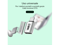 L'adattatore funziona sia con smartphone che con laptop. Grazie alla funzione OTG, permette di collegare pen drive, tastiere o mouse al telefono e utilizzare gli accessori comodamente come su un computer.