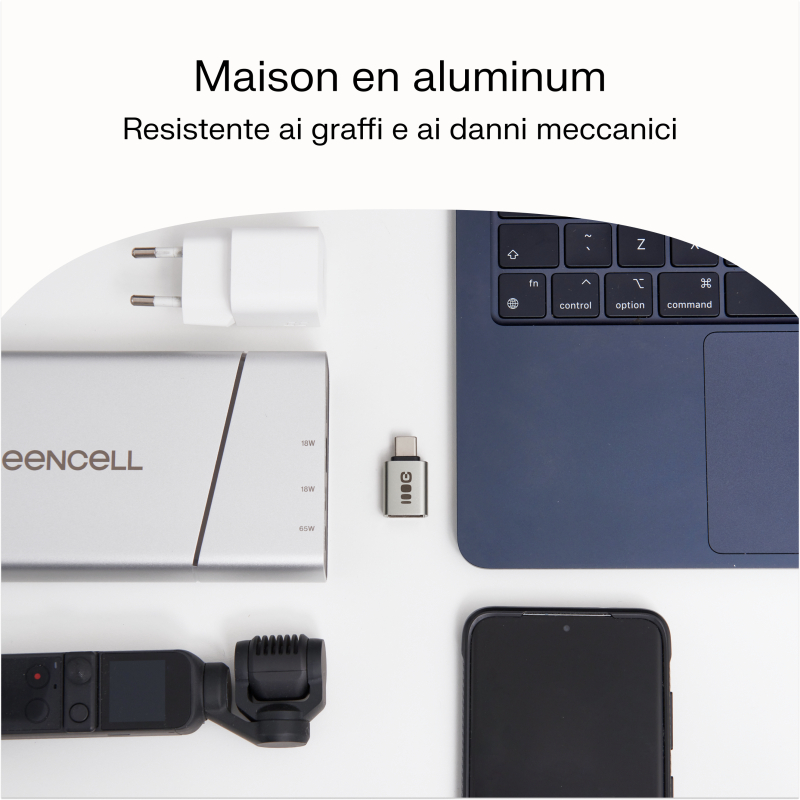 L'adattatore è realizzato in alluminio di alta qualità e materiali solidi, rendendolo resistente a graffi e danni meccanici. Garantisce affidabilità e mantiene un aspetto moderno anche con un uso intensivo. La forma semplice e moderna fa sì che l'adattatore si integri perfettamente con i più recenti dispositivi mobili e computer.