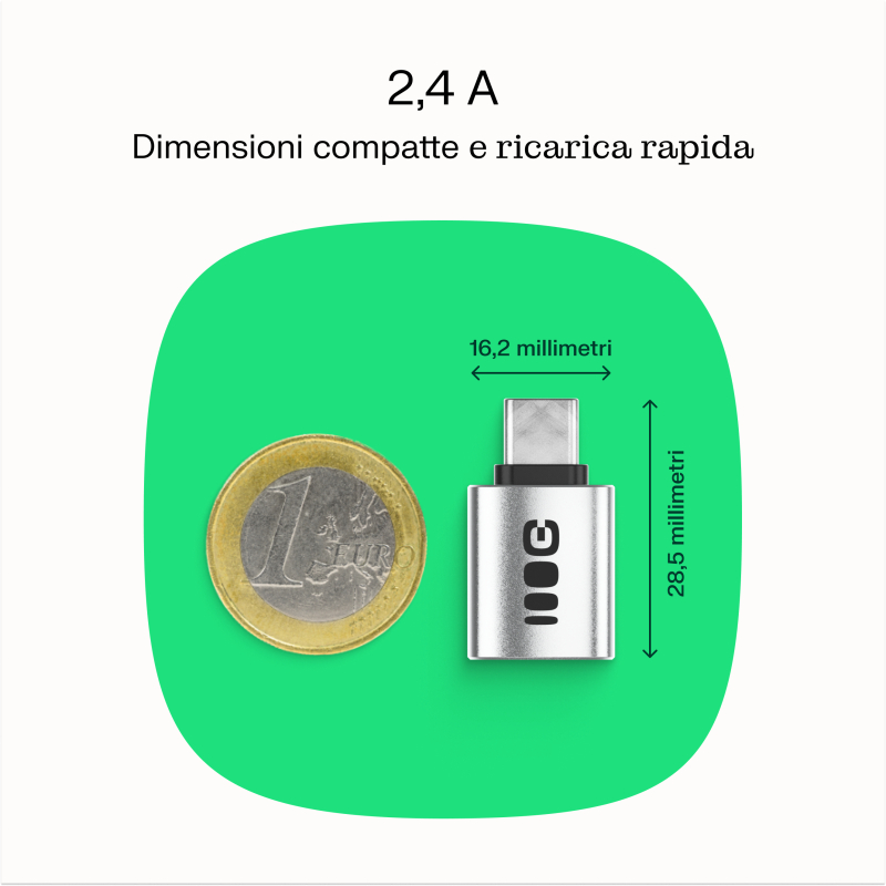 L'adattatore è piccolo e leggero, quindi può entrare in tasca o anche nella borsa più piccola. Inoltre supporta ricariche rapide e stabili a 2.4A.