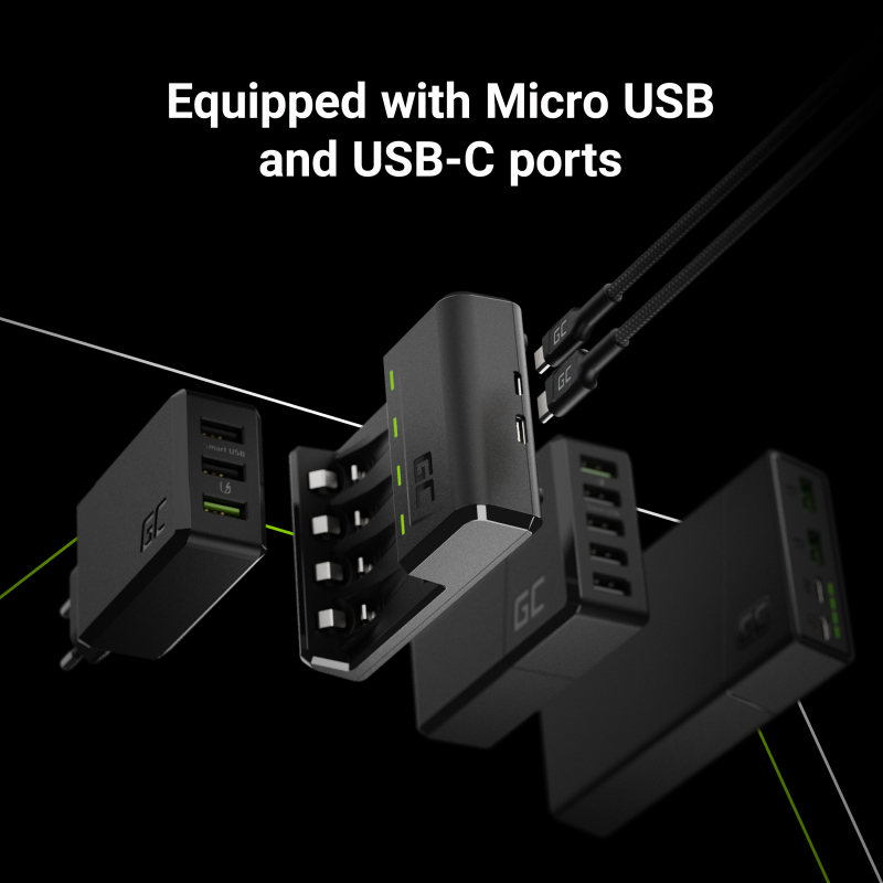 • Grazie alle porte USB-C e micro USB integrate, il caricabatterie può essere alimentato da tutti i tipi più popolari di alimentatori e power bank