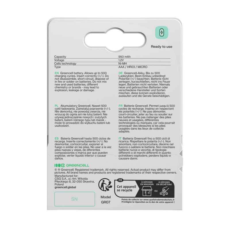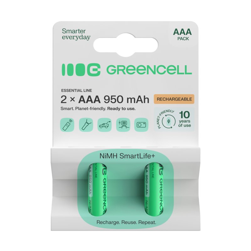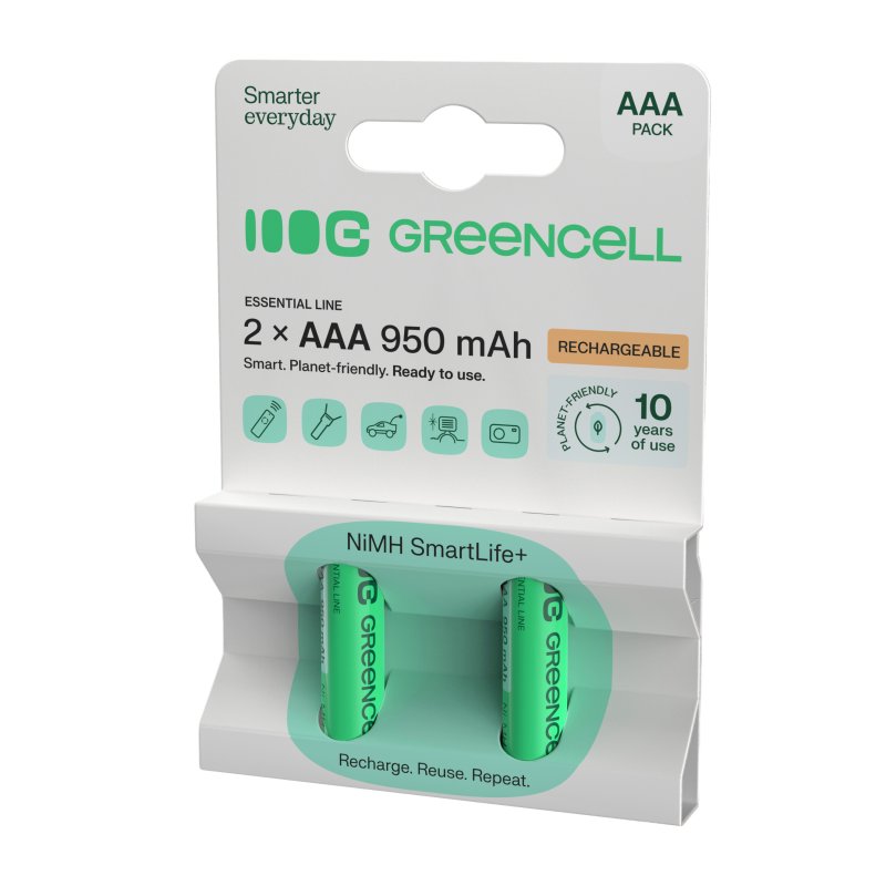 Queste sono batterie che possiamo usare allo stesso modo in cui usiamo le batterie usa e getta AAA. Le batterie Greencell si differenziano per la possibilità di ricaricamento, riducendo così il costo dell'utilizzo di molti elettrodomestici alimentati da batterie tradizionali. Sono caratterizzate da una capacità elevata e reale - 950 mAh, che garantisce tempi di lavoro più lunghi rispetto alle batterie usa e getta.