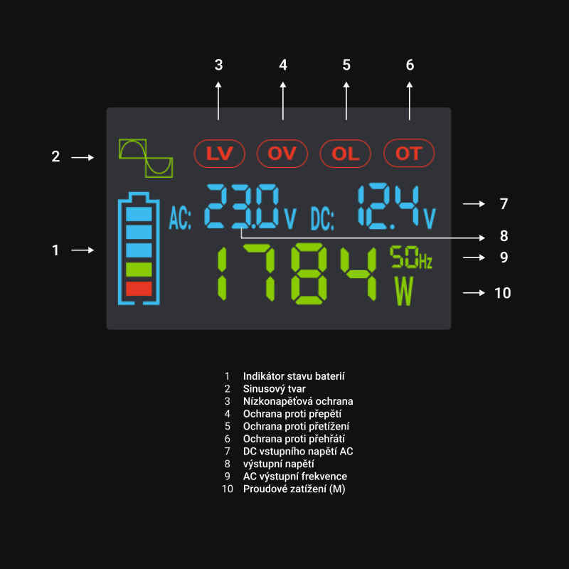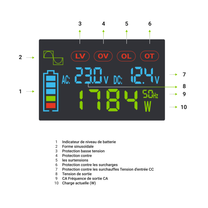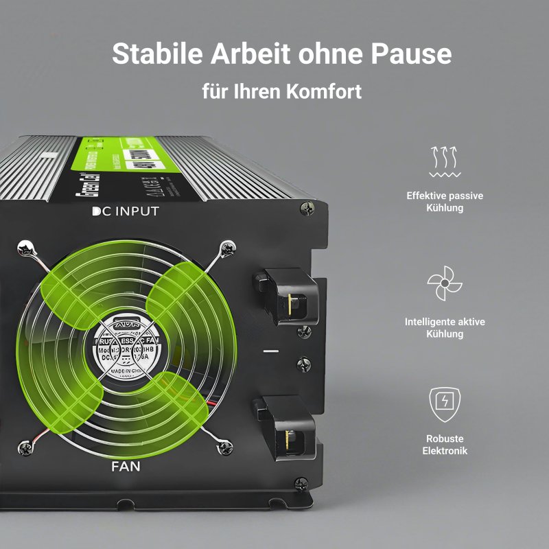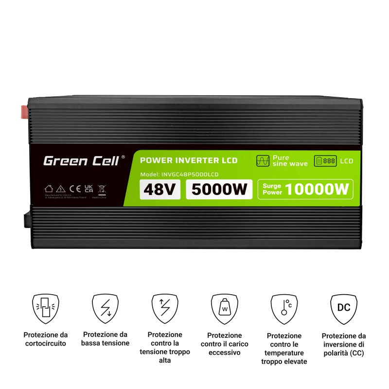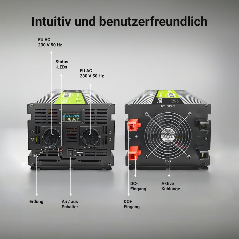 L'aspetto più importante nella scelta dell'inverter è determinare la potenza massima del dispositivo collegato. Se si desidera utilizzare l'inverter in modo permanente, è necessario utilizzare al massimo il 90% della sua potenza continua. Facciamo un semplice esempio per illustrare questo: Se si utilizza un inverter con una potenza di 1000 W, il consumo massimo di potenza del dispositivo collegato non deve superare i 900 W.